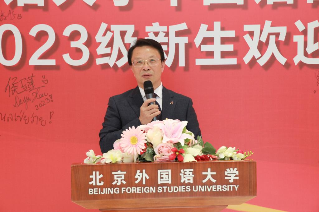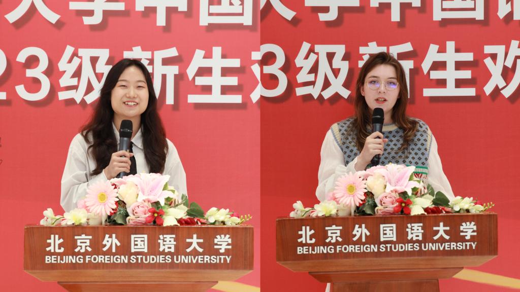 李琴心、柯亦兰(来自俄罗斯)两位同学分别作为中外在校生代表发言。李琴心同学希望大家从发掘自我出发,拥有赤子情怀;同时走向他人,拥有超越自我的立场,将自身融入集体,用北外人的视野观览世间大潮。柯亦兰同学回忆起初入北外的经历恍如昨天,用求知若渴的精神探索着自己在华留学的无限可能,用发奋图强的态度展现了北外学子的良好风貌。
