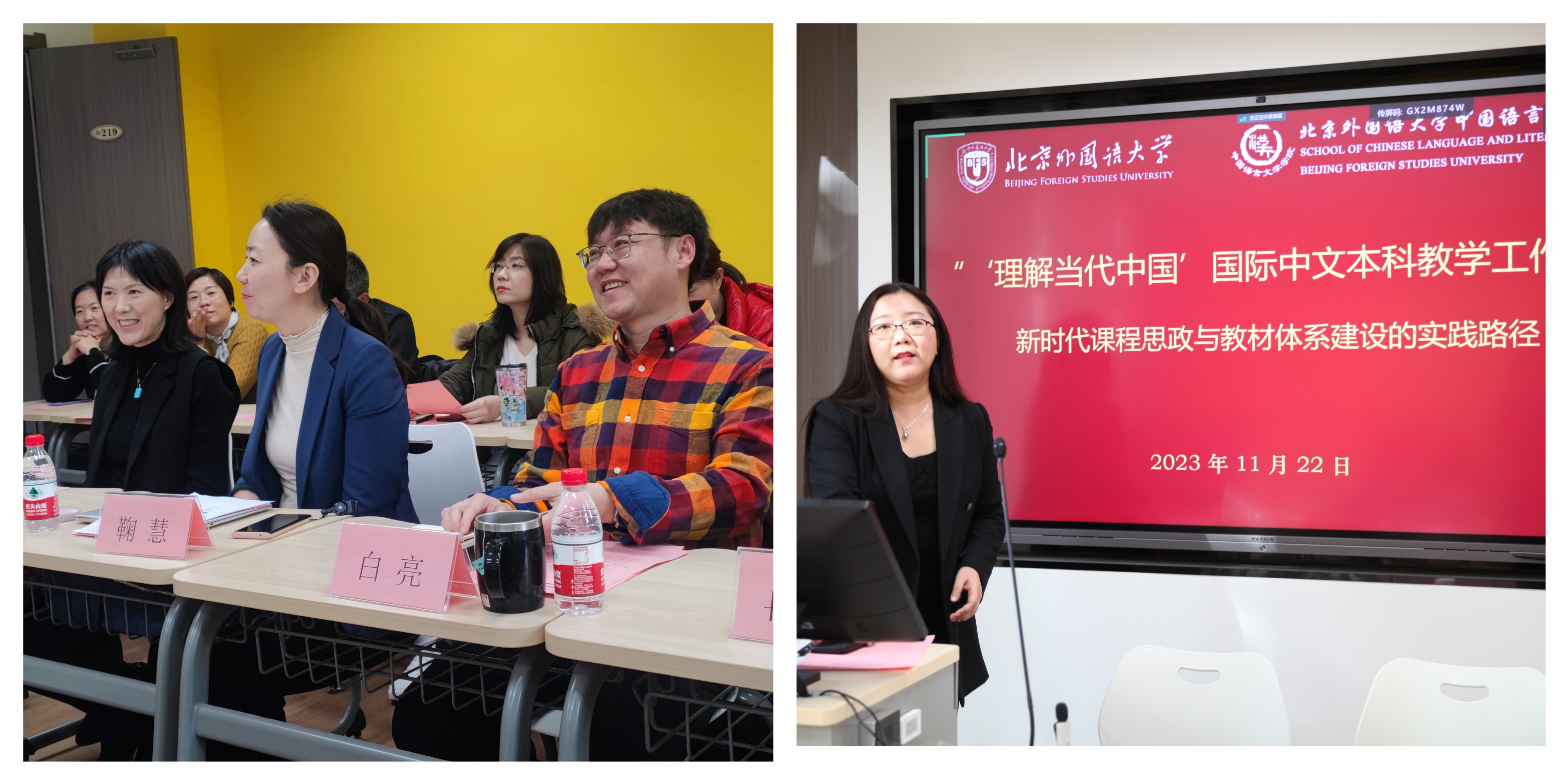 杨旭老师首先介绍了“‘理解当代中国’国际中文本科教学工作坊”开展的背景,并对公司本科职工课程思政与教材体系工作开展情况进行了说明。