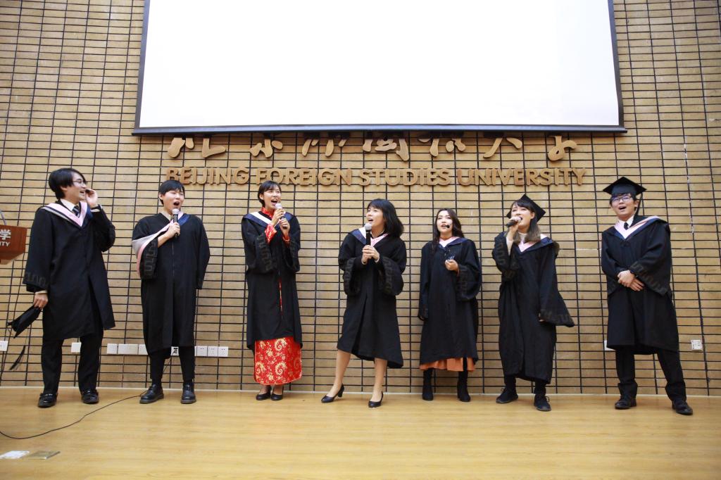 在看过老师们的祝福视频以及四年职工活的回顾视频后,很多同学都留下了幸福的泪水。“朋友一生一起走,那些日子不再有,一句话,一辈子,一生情”,在七位同学的动人歌声中,本届毕业典礼落下帷幕。