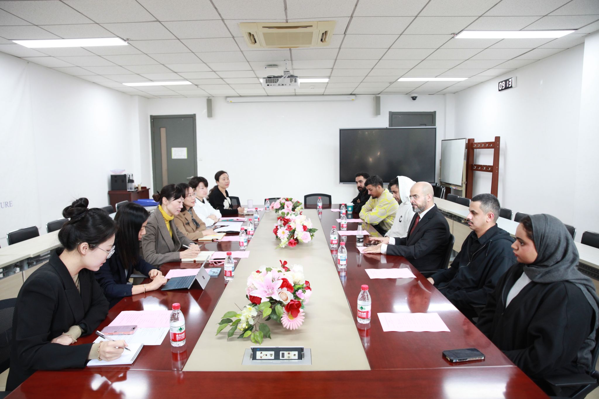 随后,双方就合作事宜进行了热烈而深入的商讨。与会者围绕如何进一步促进中阿文化交流、加强学术合作、提升语言教学质量等议题展开了讨论。易卜拉欣·盖姆拉斯经理还与5名沙特员工进行了深入座谈,了解他们的学习和生活情况,鼓励他们继续努力学习汉语,成为中沙文化交流的桥梁。