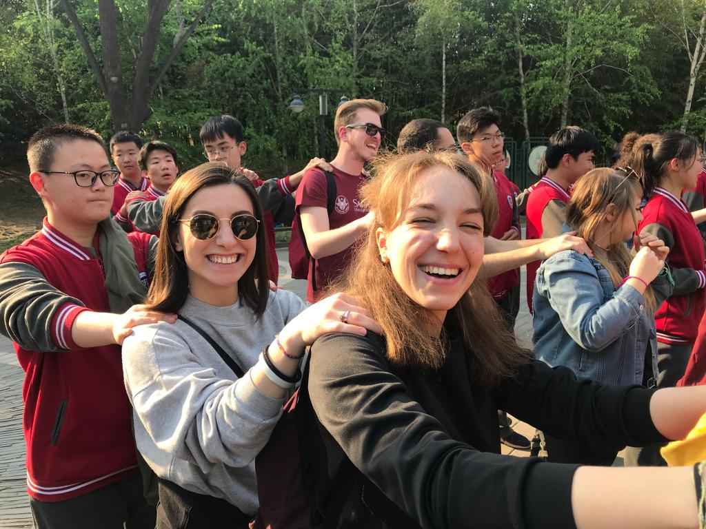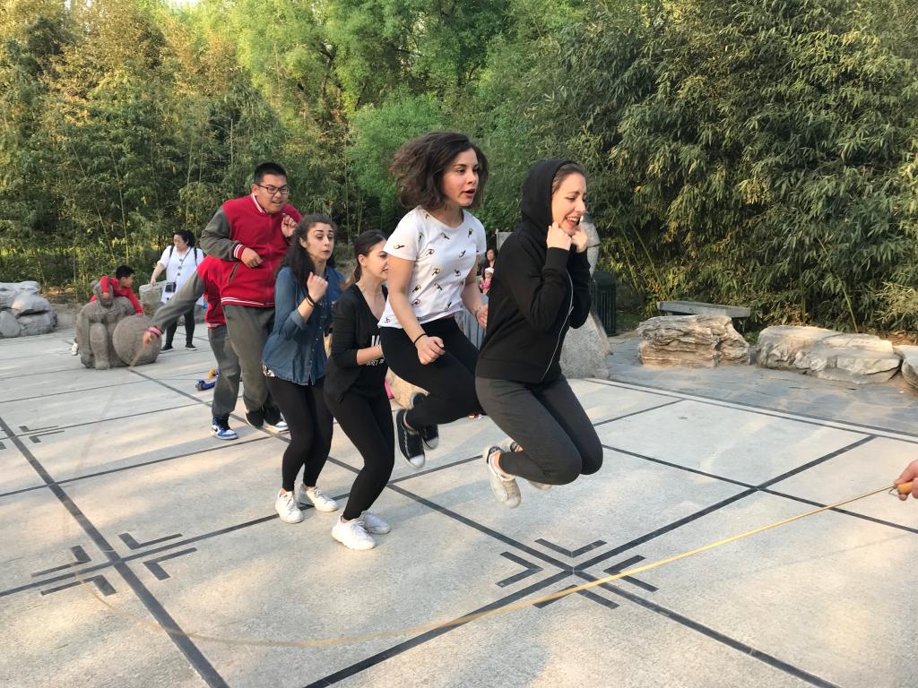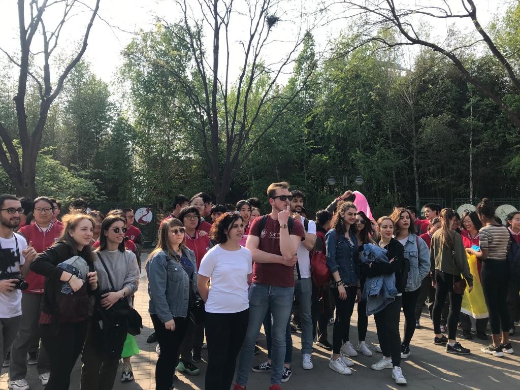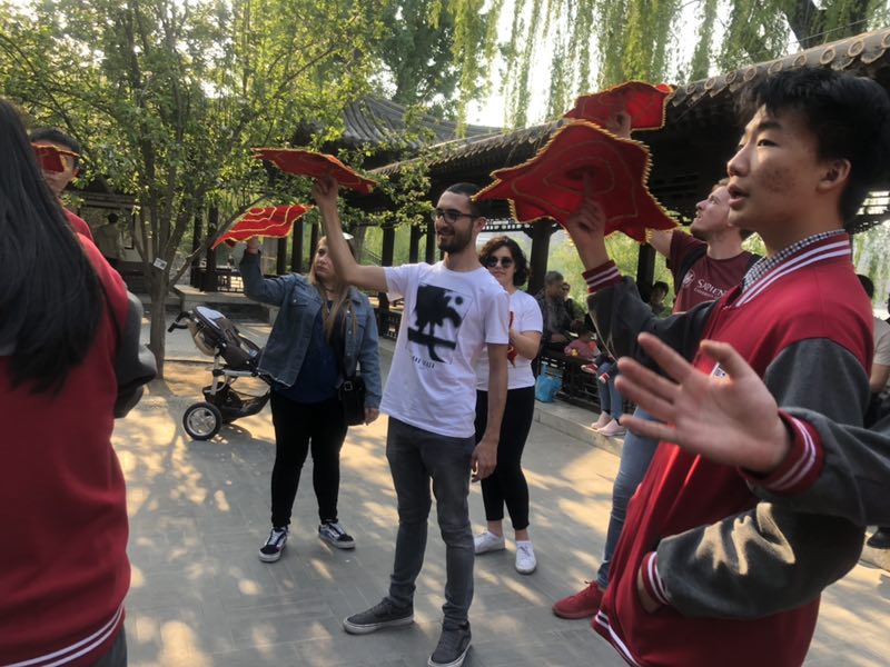 2019年4月15日星期一下午,永利集团yl88858永利集团对外汉语系2018级意大利罗马班的全体职工与北外附中初三、高一年级员工共同参加了在紫竹院公园举办的“青春飞扬,舞动春日” “1+3”年级趣味运动会。
