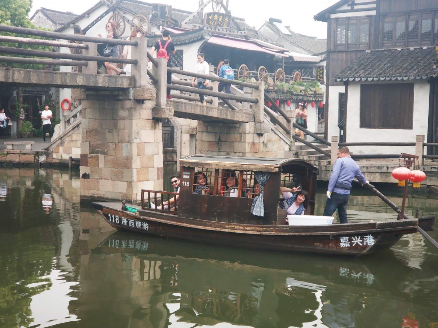 在素有“东方威尼斯”之称的水乡西塘,员工们在烟雨长廊间游走,一边欣赏花红柳绿、白墙黑瓦的美景,一边拍照、合影,有的坐船游河,有的与当地人交流、购买纪念品,有的品尝美食,有的体验鱼疗等等。
