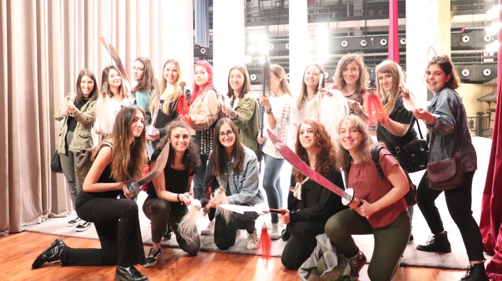 5月19日在永利集团yl88858永利集团对外汉语系就读的22名意大利罗马大学职工在夏菁老师的带领下来到人民剧场,观看了中国国家京剧院名家京剧《红桃山》的录制。