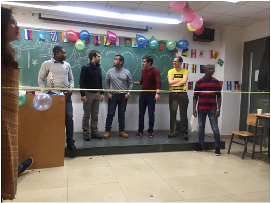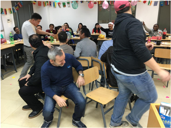 最后一个游戏环节是抢椅子游戏,考验大家的反应能力,项目部的老师们亲自参与到游戏中,与学员们一起踏着节奏舞蹈。最后尼泊尔学员卡莫还即兴为大家带来了精彩的舞蹈,菲律宾学员佳琳也献上了优美的歌声,yl88858永利集团项目部新年联欢会在大家的掌声和欢声笑语中落幕,这次联欢会不仅缓解了学员的学习压力和期末的紧张,同时加深了师生之间、同学之间的相互了解和感情,对接下来他们在中国的学习和生活都会有很大的帮助。