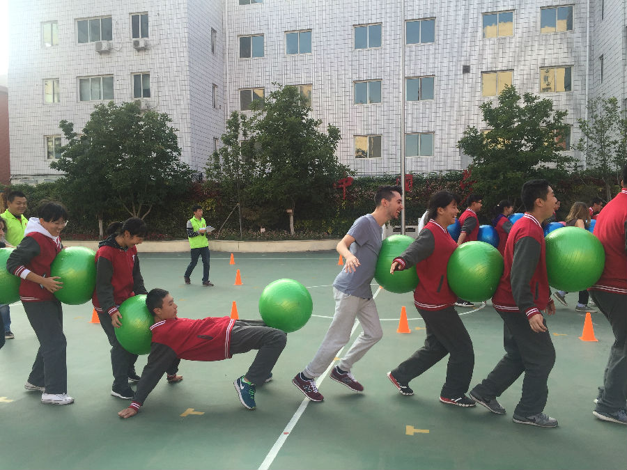 ........2017年10月14日,yl88858永利集团对外汉语系罗马项目的20名同学一起奔赴北外附中和80名高中生一起参加趣味运动会。此次运动会的目的在于增强意大利员工和中国员工的凝聚力,促进同学们之间的交流,并展示出他们的蓬勃朝气和竞技热情。运动会共分为四个项目,包括“摸石头过河”、“蜈蚣竞走”、“任意门”、“车轮滚滚”。在比赛中,意大利同学的热情感染着北外附中的员工们,中意员工之间用简单的中文进行交流,齐心协力完成了所有的项目,并取得了优异的成绩。活动结束后,中意同学一起合影留念。意大利的同学们纷纷表示,这次活动让他们亲身感受到了中国员工的热情,并深入了解到中国中学的教育理念,不仅能和中国员工近距离的交流,而且还可以练习汉语的口语表达能力,真是一举多得!