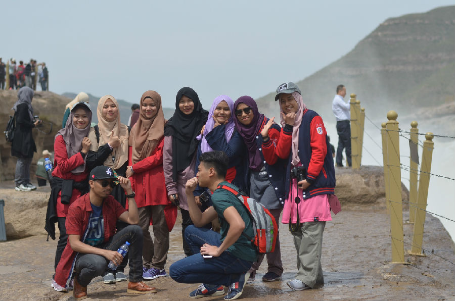 到达西安后同学们首先前往大唐芙蓉园,欣赏了蕴涵盛唐风韵的歌舞表演《梦回大唐》,随后又参观了被誉为“世界第八大奇迹”的兵马俑,亲身感受到了地下宫殿的威严。最让同学们难以忘怀的是西安钟鼓楼旁边的回坊街,在那里同学们品尝到各式各样的西安当地的清真小吃。最后,同学们奔赴壶口瀑布,看着滚滚奔腾的湖水,不禁让人感叹不已!