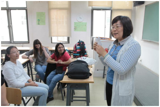 联谊从下午三点正式开始,员工分成五个小组分别在孙琳、刘美仪、佟雪婷、岳瑶和梁冬梅老师的带领下在不同的教室进行活动。本次联谊分为两个部分:前一个小时为自由交流,员工随机组成小组交流,话题从初次见面的寒暄问候到在北京的日常生活;后一个小时老师们组织员工开展了丰富有趣的语言游戏竞赛,如筷子夹花生比赛、“萝卜蹲”、“你画我猜”、“拍手说词”、“击鼓传花”等游戏,在这一环节中,员工表现十分积极,联谊的氛围达到了高潮。游戏过程中,我们还为每位参与活动的员工准备了有中国特色的皮影和剪纸作为礼品。活动最后大家互留了联系方式,联谊活动在十分愉快的氛围中结束。