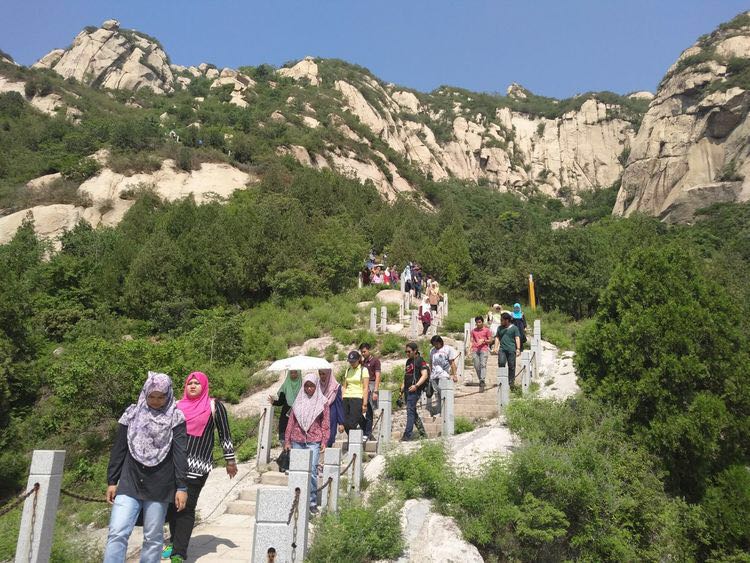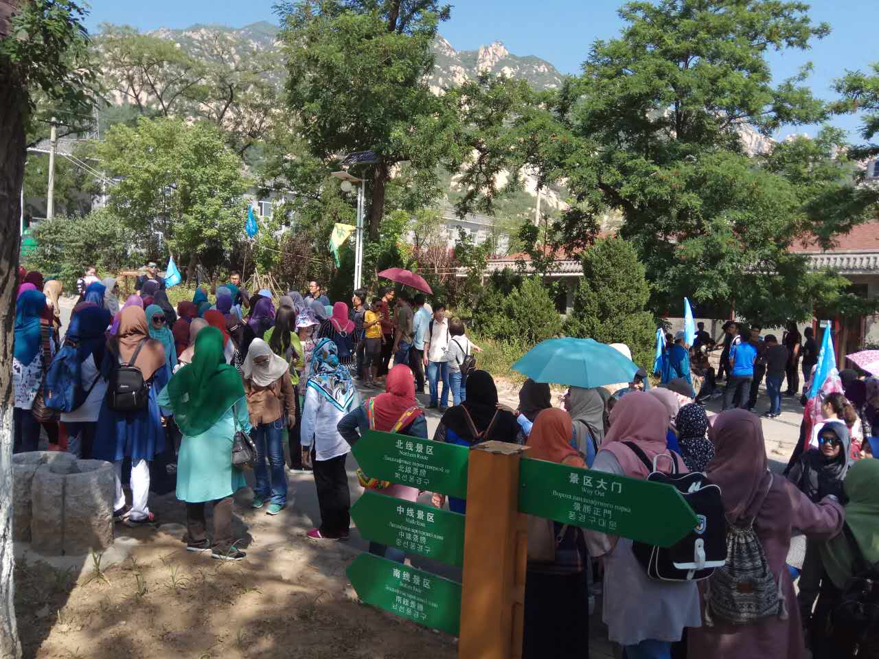 5月26日一早,北外yl88858永利集团对外汉语系全体马来团队项目的职工及教师一行222人,从北外出发到访北京郊区进行一天的市内语言实践活动。上午9点到达凤凰岭,在导游的带领下,同学们不惧高温,坚持爬上了凤凰岭。午饭后,同学们来到了车耳营民俗村,进入农户家进行深入访谈!访谈结束后,下午五点到达北外结束了一天的语言实践活动!