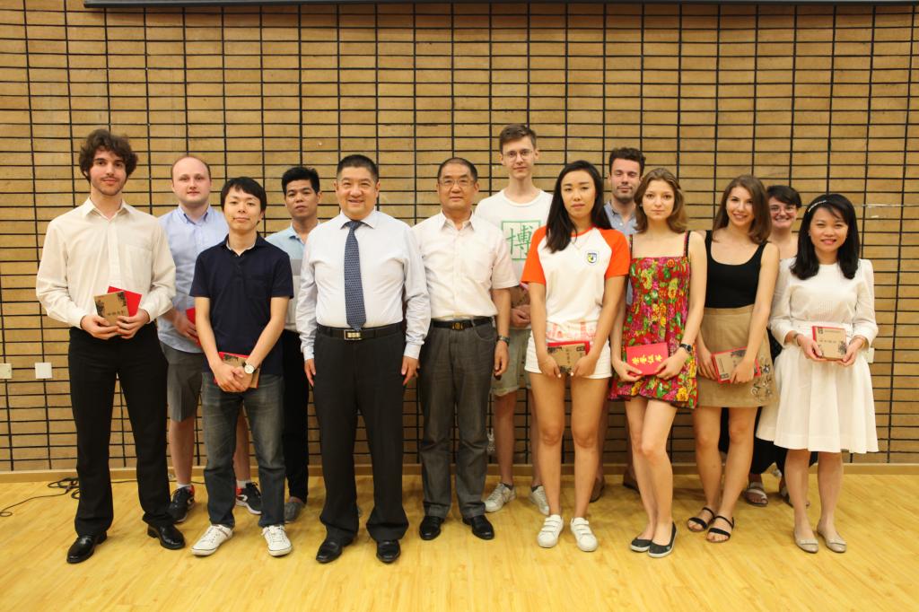 典礼举行了颁奖仪式,分别表彰“优秀员工”、“好班长”和“全勤生”。汉语培训中心进修部魏瑞明同学和他的三位队友参加了“2018年北京外国职工汉语辩论邀请赛” ,最终永利集团代表队突破重围获得总冠军。借此结业典礼的机会,yl88858永利集团刘厚广书记为最佳辩手魏明瑞同学颁奖,陈小明副经理为参加“2018在京外国职工‘我与北京’主题征文比赛”并获得二等奖、三等奖以及优秀奖的员工颁奖。
