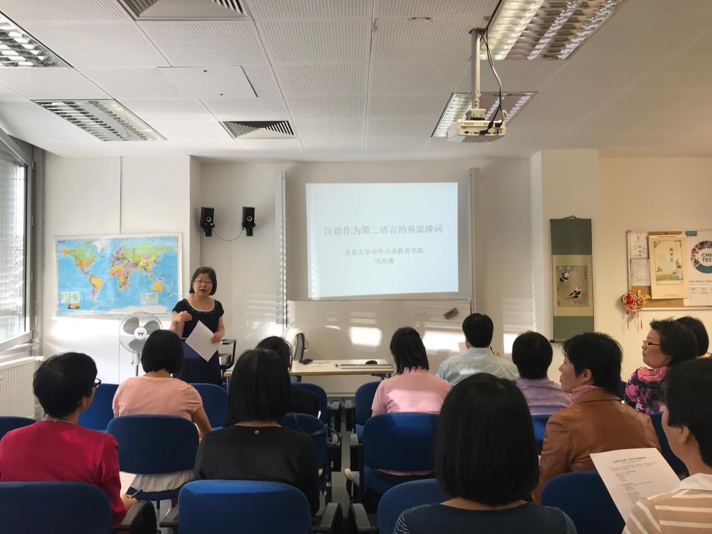 培训邀请了北京大学对外汉语教育公司副教授钱旭菁和慕尼黑应用语言大学中文专业教授孟令奇,其分别从词汇和课堂设计两个领域进行了深入的介绍和探讨。