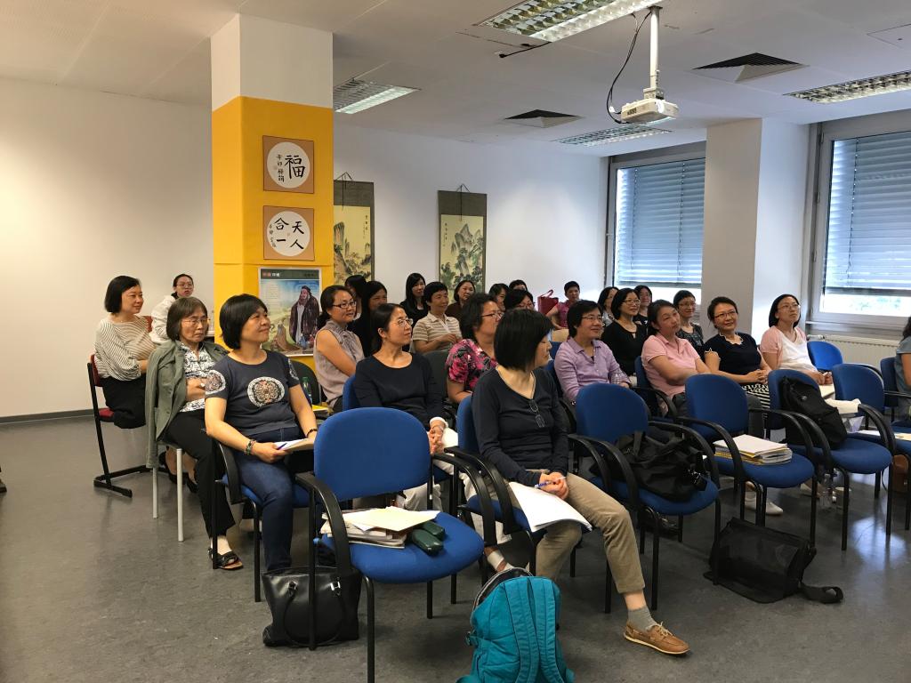 2018年7月7日,为提高本土汉语教师的专业水平,普及国际汉语教学领域的最新研究成果,慕尼黑孔子公司为德国本土教师搭建了交流和学习的平台,组织并成功举办了德国本土汉语教师培训,来自德国的大学、德语区孔子公司及当地中小学近40位汉语教师参加了此次培训。