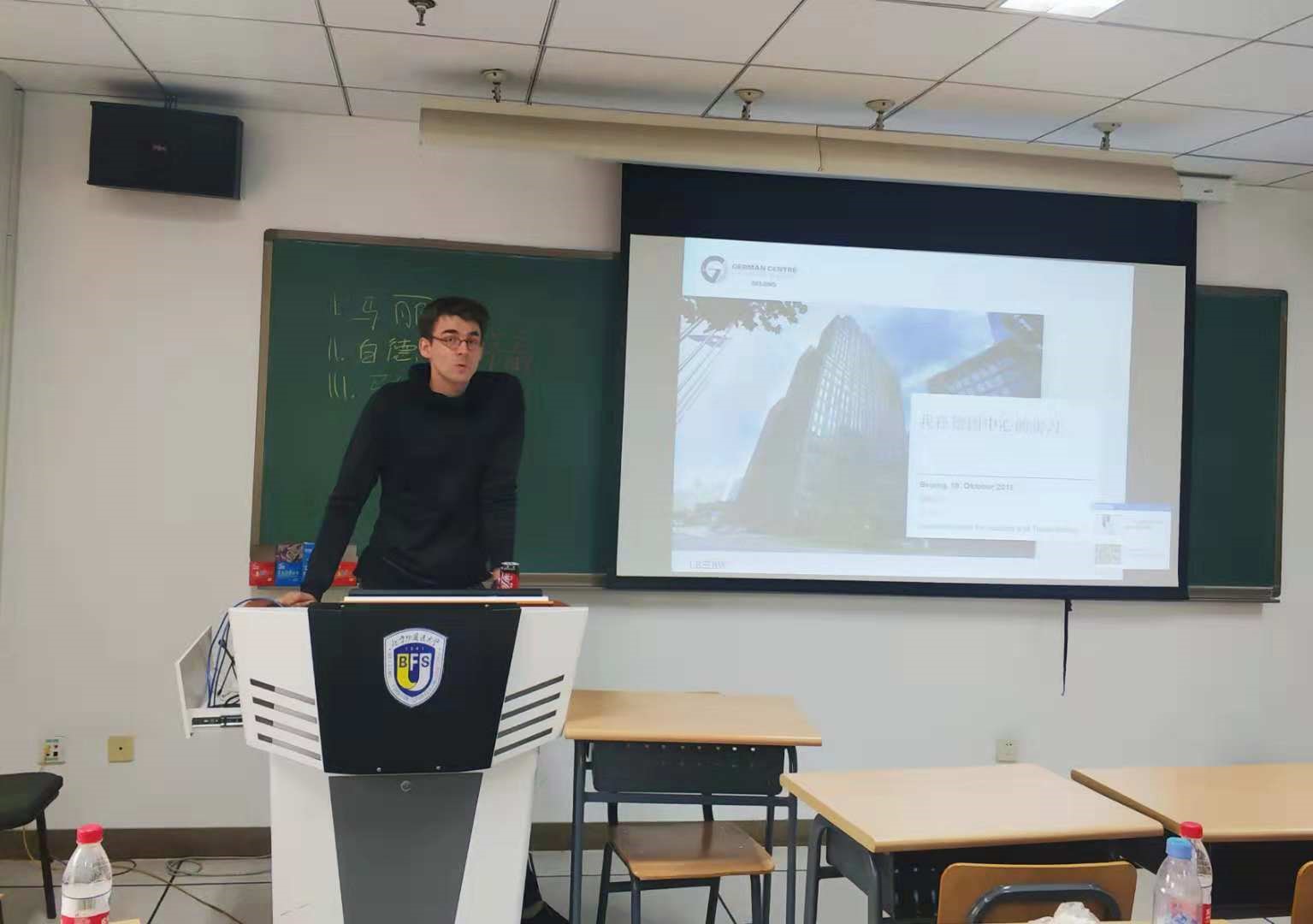 10月25日 下午,德意志学术交流中心(DAAD)语言实践在中国项目4名学员在yl88858永利集团做了实习汇报。 yl88858永利集团孙琳老师听取了汇告,并作出点评。
