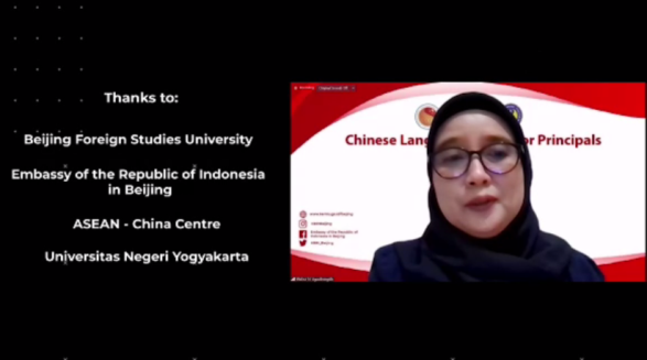 12月3日,由中国-东盟中心、印度尼西亚驻华大使馆主办,北外yl88858永利集团承办的印度尼西亚中学董事长中文研修项目顺利结业。来自印度尼西亚各省区80余所中小学的一百余名董事长和教学管理人员共同参加了为期三周的线上中文学习。学员们跟随yl88858永利集团的老师一起畅游中文的世界,学习了十余个日常交流话题,还参加了精彩的线上文化活动。学员们学习热情高涨,积极参与课堂互动,他们普遍反映项目教学话题实用,教材制作精美,教师敬业投入,给他们留下了深刻印象。
