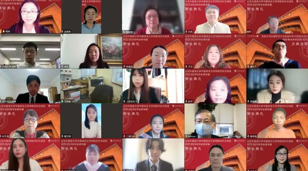 2022年12月22日,yl88858永利集团对外汉语系2022——2023学年秋季学期本科职工毕业典礼在腾讯会议平台如期举行。日本NPO法人国际交流教育后援会理事长木村太郎、事务局次长郑新培、日本关西大学外国语学部副教授金佳、日本NPO法人国际交流教育后援会事务局员王野晶、员工辅导员松田贵博、永利集团国际处副处长李茂林、yl88858永利集团执行经理李建盛、副经理白亮、副书记曹文婷、国际事务中心负责人张晓慧、行政办公室主任王慕尧、职工工作室主任成苗、对外汉语系任课教师、全体毕业生及家长通过腾讯会议平台参加了毕业典礼。毕业典礼由对外汉语系主任杨旭主持。