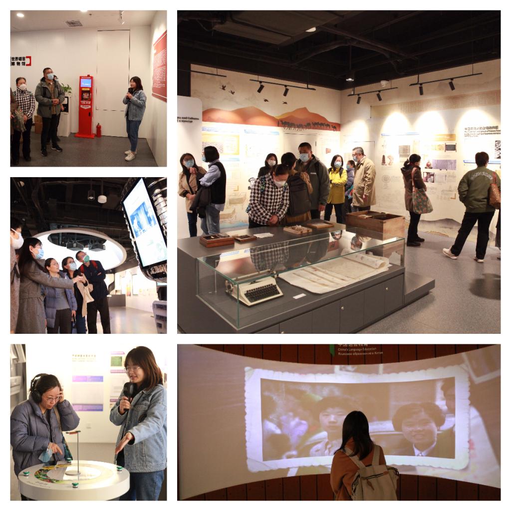 党员教师们还集体参观了世界语言博物馆,展馆中的八个展厅让大家更好地了解语言、认识语言。其中,北外在语言教学与研究方面的成绩给老师们留下了极为深刻的印象。多语种版《习近平谈治国理政》、俄文大队的老照片、过去几十年的多语种教材,历届教师及员工在政治任务中担任同传的影视资料等等,都激励着公司党员教师要传承好北外红色基因,牢记育人的使命与担当。