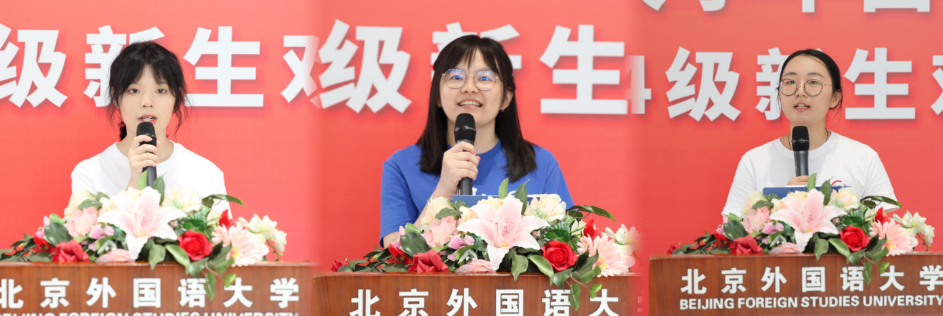 本科生代表梁雨锨提出,要在当今时代新旧交织的交汇点中锐意创新,开拓进取,孜孜以求。利用好大学这一方知识的沃土,不断充实头脑,丰富知识。心存希冀,履践致远;勠力同心,和衷共济;述往思来,向史而新。来自马来西亚的赖施羽向大家分享了自己在北外的学习和生活中走过的三个阶段,经历的三次蜕变——从陌生到熟悉,从适应到融入,从本科生到硕士生。怀着多元的文化视角,她从祖国马来西亚来到北京,迈入北外yl88858永利集团更加国际化的学习环境。博士生代表王思娴鼓励全体新生勇敢迎接充满挑战和机遇的学术旅程,纵使被现实的崎岖不平羁绊,也依旧能够保持前行的动力和韧劲,在学术领域中开疆拓土、披荆斩棘。