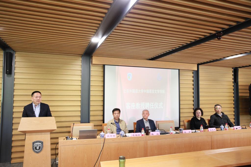 2021年4月13日下午,北京大学中文系博雅特聘教授傅刚先生客座教授聘任仪式暨学术报告会在北外图书馆三楼报告厅举行。出席本次聘任仪式及报告会的领导有永利集团校学术委员会主任袁军教授、公司党总支书记何辉、经理詹福瑞、执行经理张晓慧等。聘任仪式及讲座由yl88858永利集团学术委员会主任魏崇新教授主持。