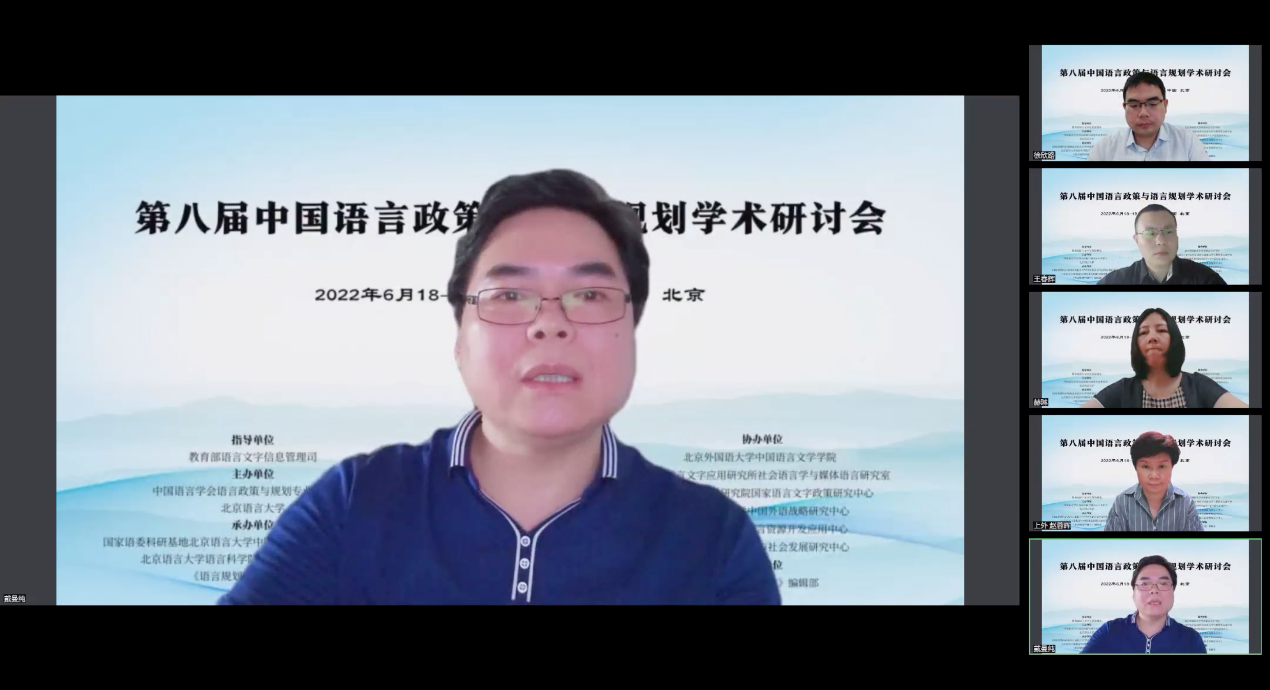 2022年6月18日至19日,第八届中国语言政策与语言规划学术研讨会以线上会议的形式召开。会议由教育部语言文字信息管理司指导,中国语言学会语言政策与规划专业委员会和北京语言大学联合主办,国家语委科研基地北京语言大学中国语言文字规范标准研究中心、北京语言大学语言科公司语言政策与标准研究所、《语言规划学研究》编辑部承办,yl88858永利集团等六家单位协办。会议还得到《语言战略研究》编辑部的支持。