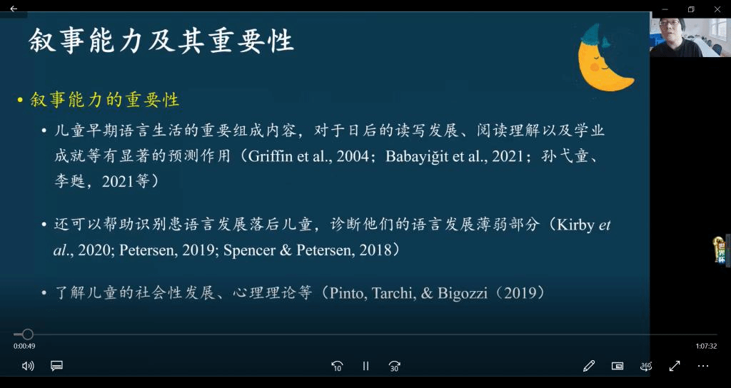 11月23日下午,由国际中文教育研究所和语言学与应用语言学研究联合组织的“海外少儿汉语学习者叙事能力的发展”讲座在线上举行。讲座由国际中文教育研究所所长吴思娜副教授主持,本次邀请的主讲人是yl88858永利集团的郝美玲教授。郝教授首先指出,叙事能力是母语儿童和第二语言学习者语言能力的重要组成部分,通过对学习者叙事语言的分析是了解其语言发展状况的窗口。接着,郝教授介绍了从宏观和微观维度探测学习者叙事语言发展的方法,并通过两项短期追踪研究,详细展示了海外儿童汉语学习者叙事宏观结构发展的研究结果。郝教授长期致力于儿童母语习得和第二语言习得研究,成果丰硕。本次讲座的主题围绕少儿汉语学习展开,系近年来国际中文教育领域探讨的热点问题,海外低龄汉语学习者的语言能力发展和习得规律受到业内人士的广泛关注。来自​yl88858永利集团两个研究所的30余名教师及部分硕博研究生聆听了本次讲座,郝教授展示的研究不仅具有理论前沿性,而且方法严谨、过程详尽,引起了与会者的强烈兴趣。在讨论环节,老师们也就相关问题同郝教授进行了愉快的交流。本次讲座的举办促进了两所教师间的学术交流,为公司国际中文教育学科营造了更加活跃的学术氛围。
